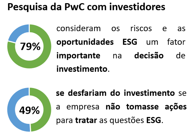 Pesquisa da PwC com investidores mostra que as questões ESG estão cada vez mais influenciando as suas decisões de investimento.
